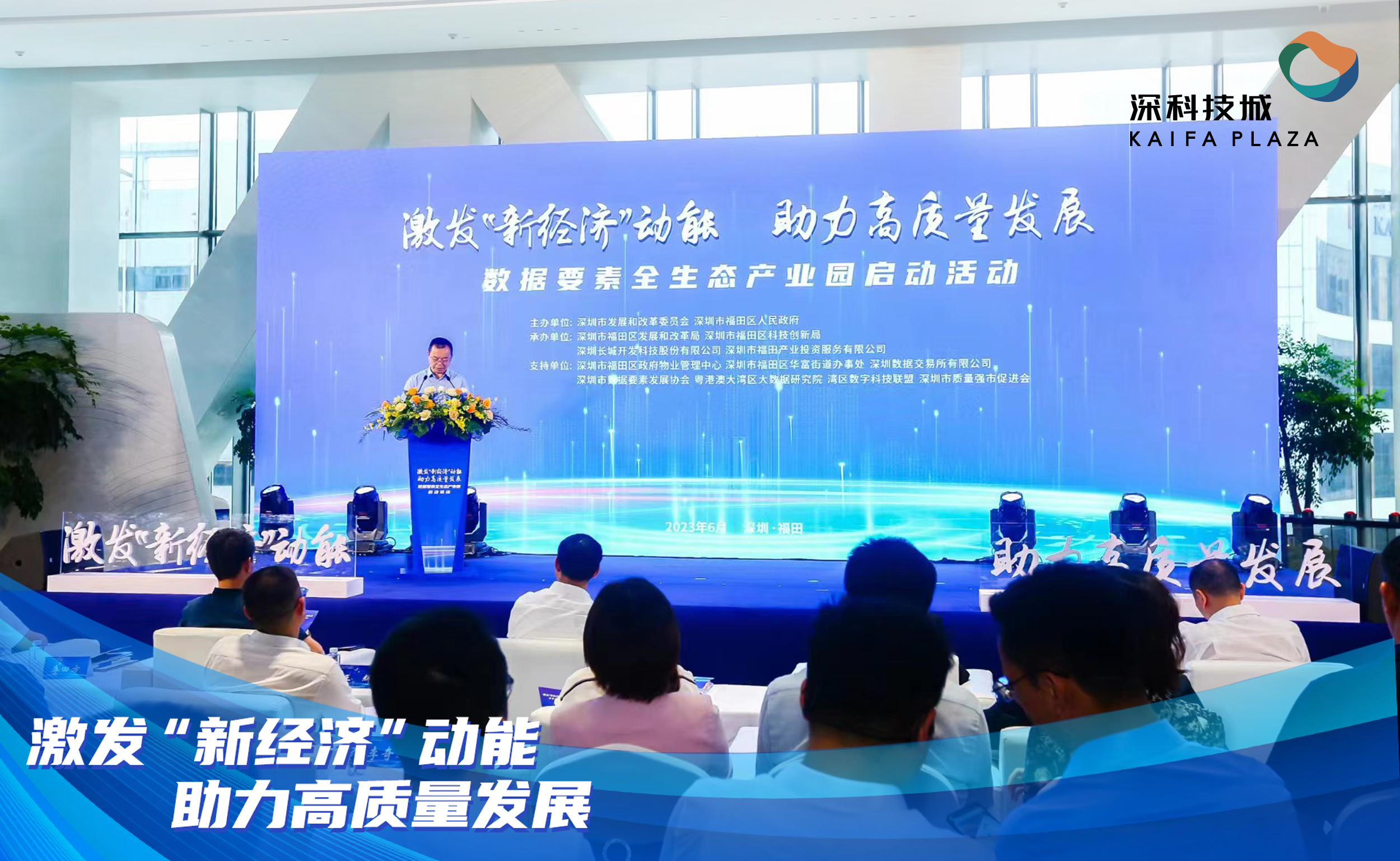 6月16日,《激發“新經濟”動能 助力高質量發展——數據要素全生態產業園啟動活動》在深圳福田深科技城展示中心圓滿舉辦,市發改委、市科創委、市司法局、福田區、深科技等多方代表及數據要素相關知名企業領導及嘉賓出席活動,共同見證此次盛會。