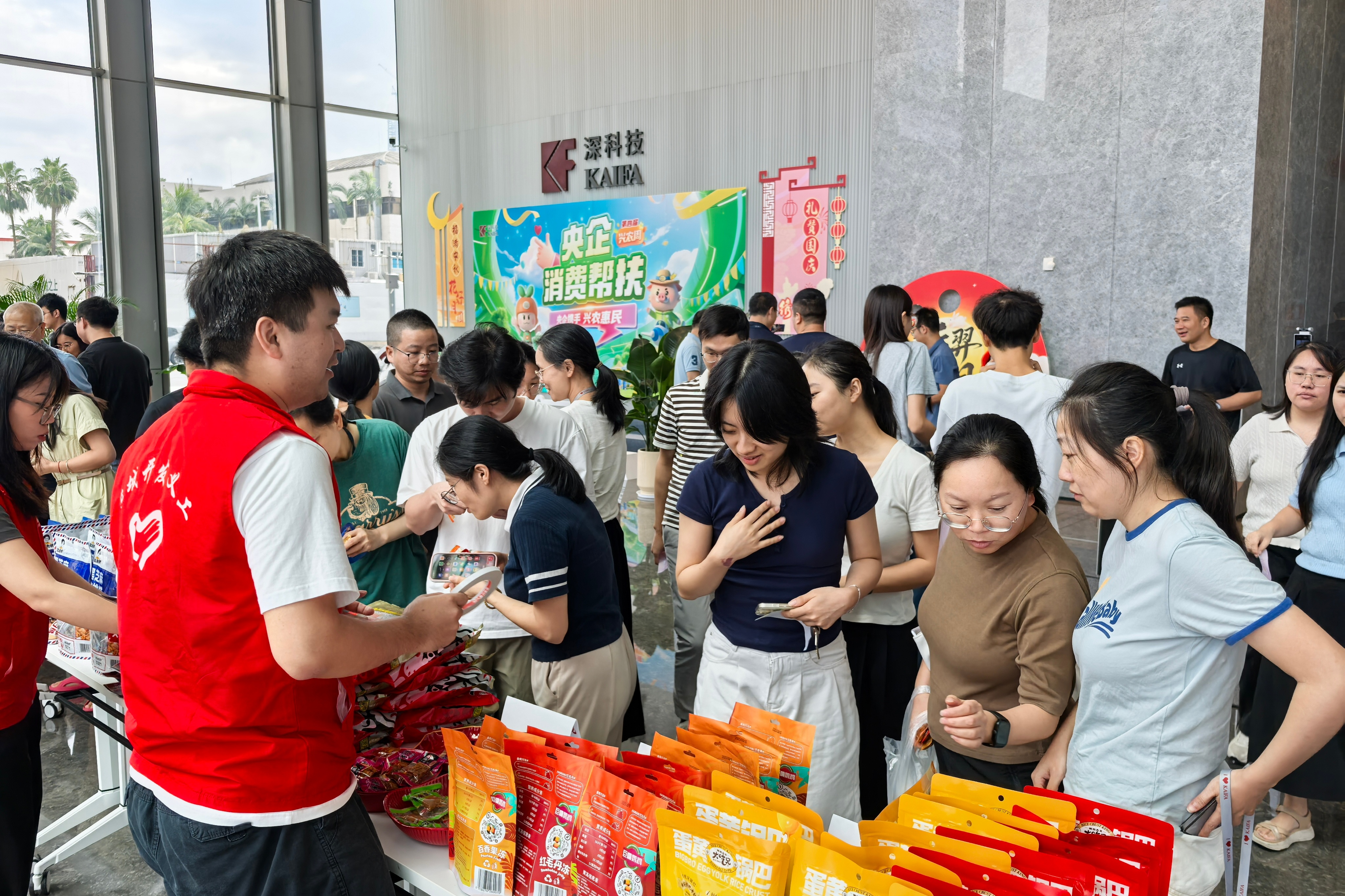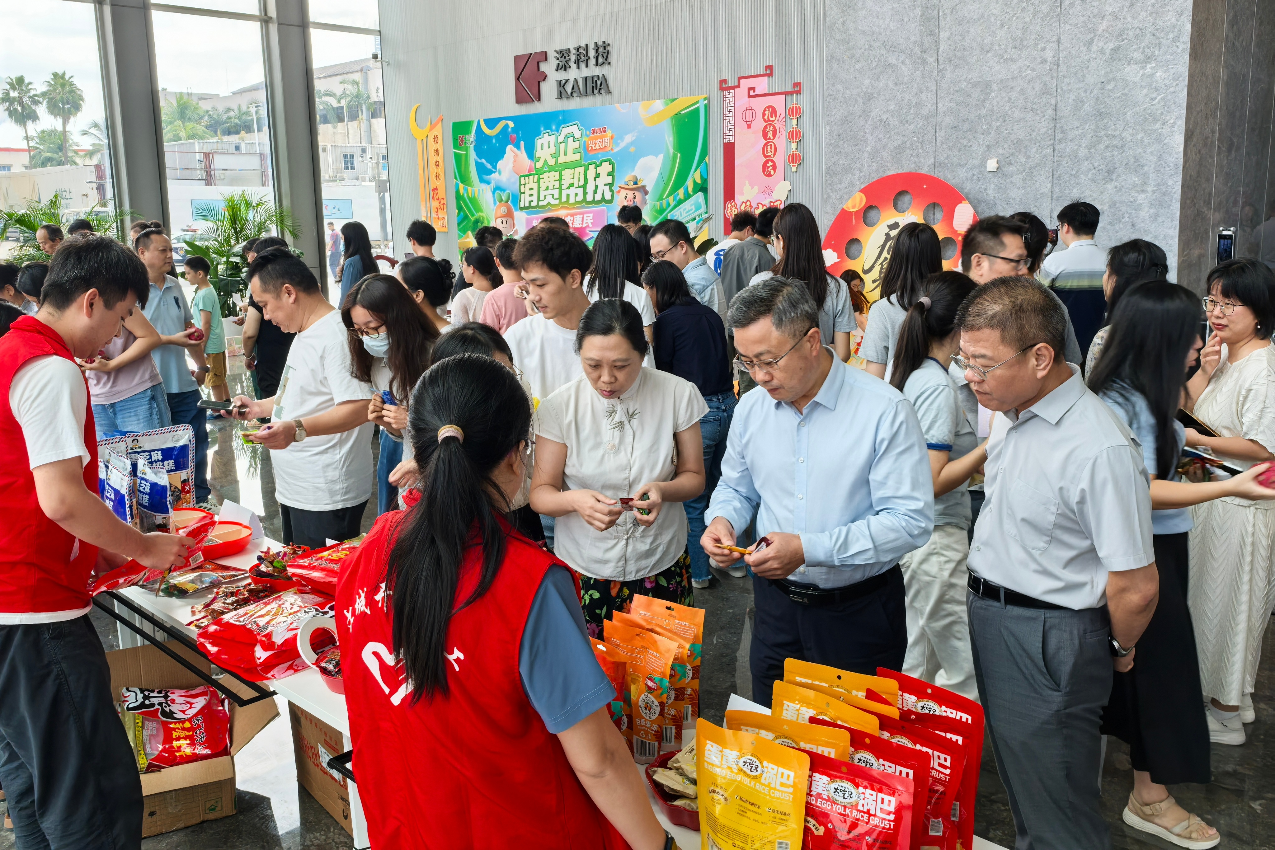 秋分時節,桂香盈袖,恰逢中秋團圓意濃,國慶華章將至。9月23日,在深科技黨委的大力支持下,深科技工會在深科技城C座大堂組織開展了第四屆“央企消費幫扶興農周”美食品鑒活動。以美食為紐帶,以幫扶為橋梁,本次活動將佳節溫情與鄉村振興使命交融,讓來自幫扶地區的淳樸風味化作舌尖上的暖流,為鄉村振興注入鮮活能量。