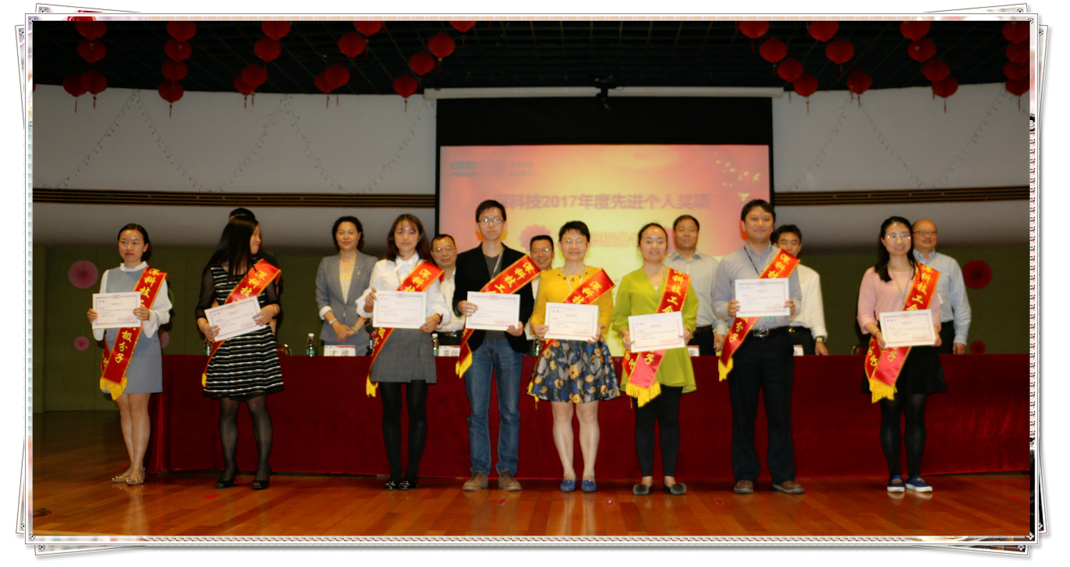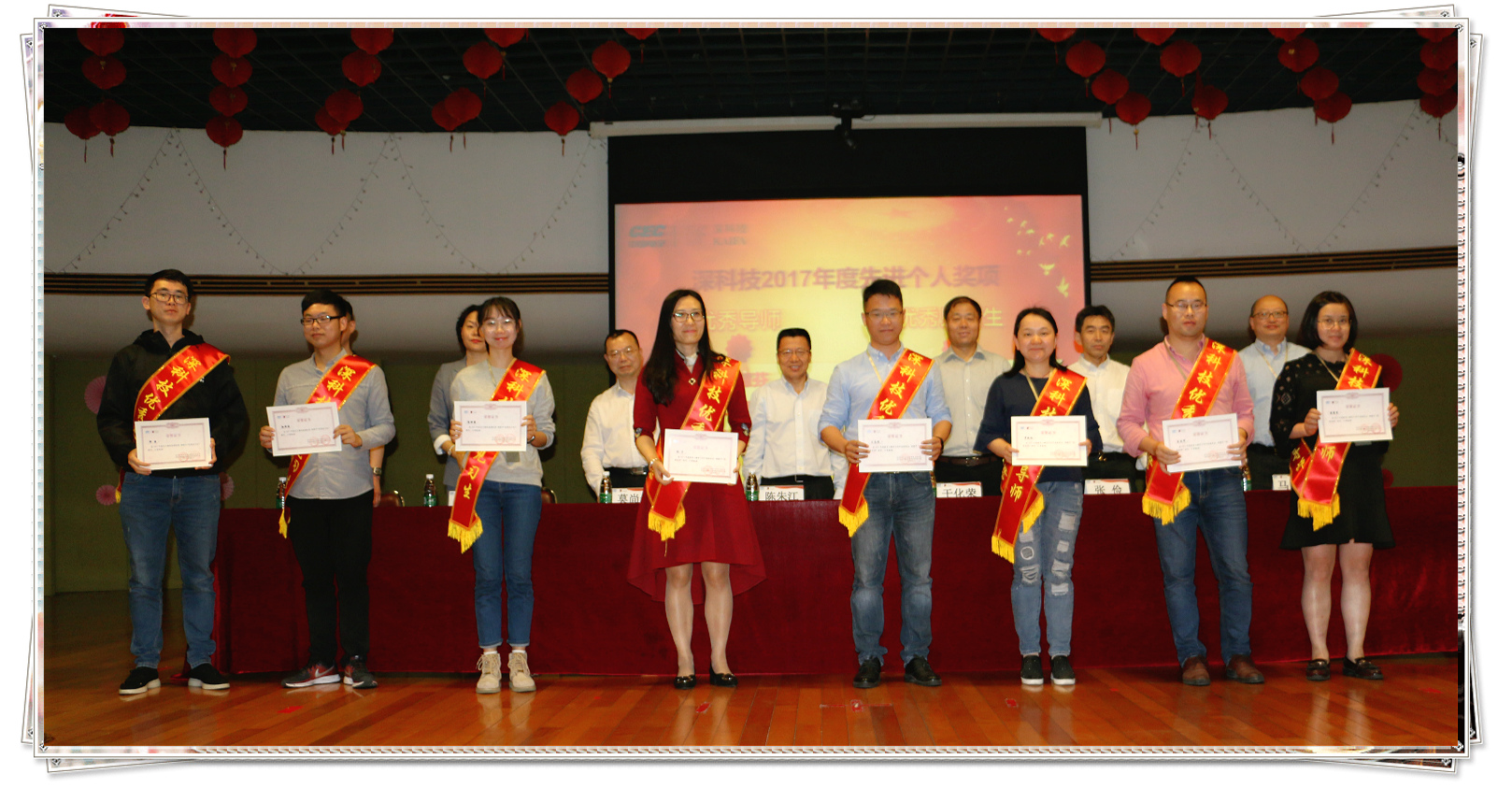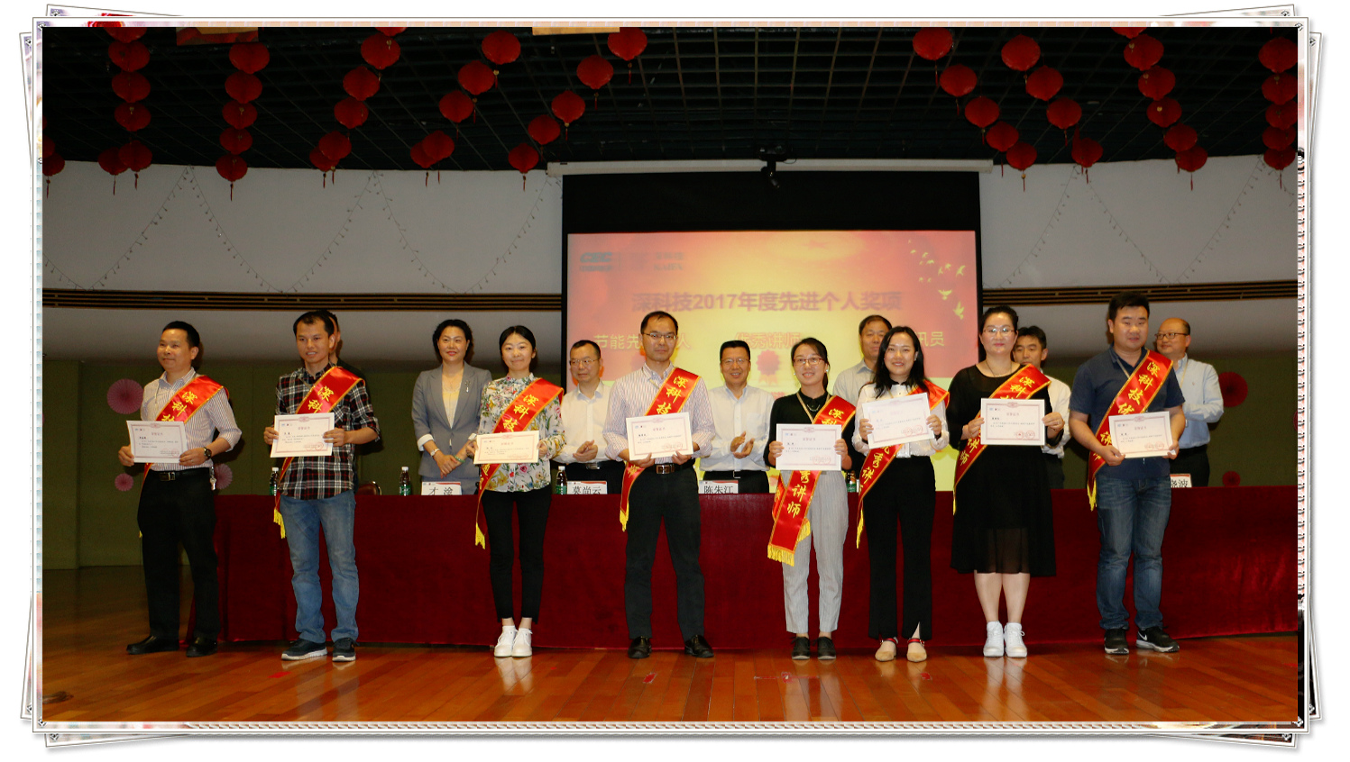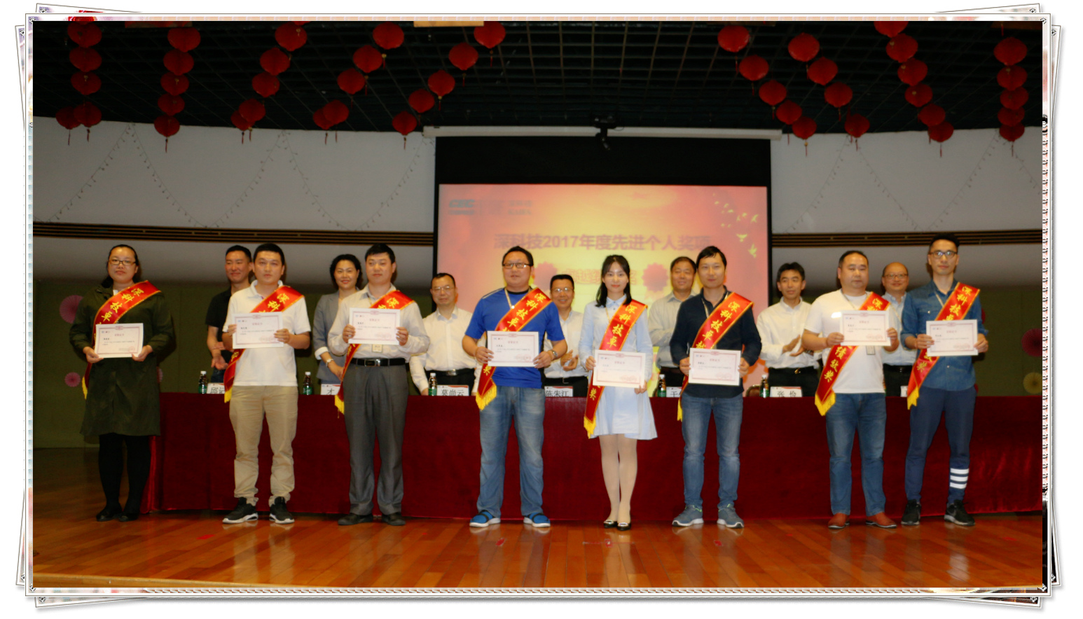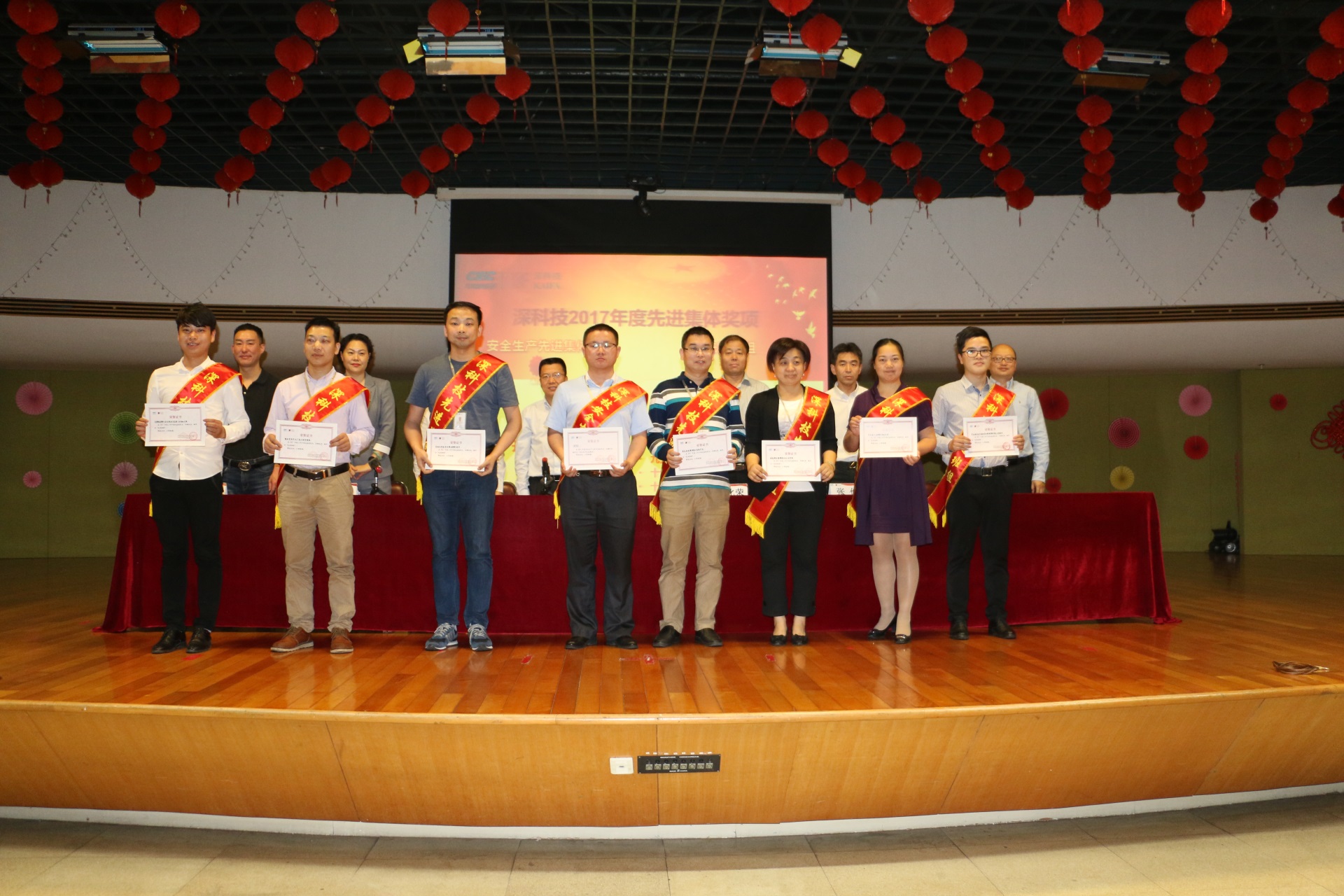 2018年4月3日下午,深科技2017年度總結表彰大會在公司俱樂部大廳舉行,公司黨委書記、副總裁陳朱江,副總裁于化榮、莫尚云,紀委書記、工會主席才淦,總裁助理張儉、邱記賢、馬曉波出席大會并為獲獎員工代表頒獎。公司各部門、分/子公司先進集體、先進個人的獲獎代表、管理人員及員工代表約280人參加了會議。會議由紀委書記、工會主席才淦主持。