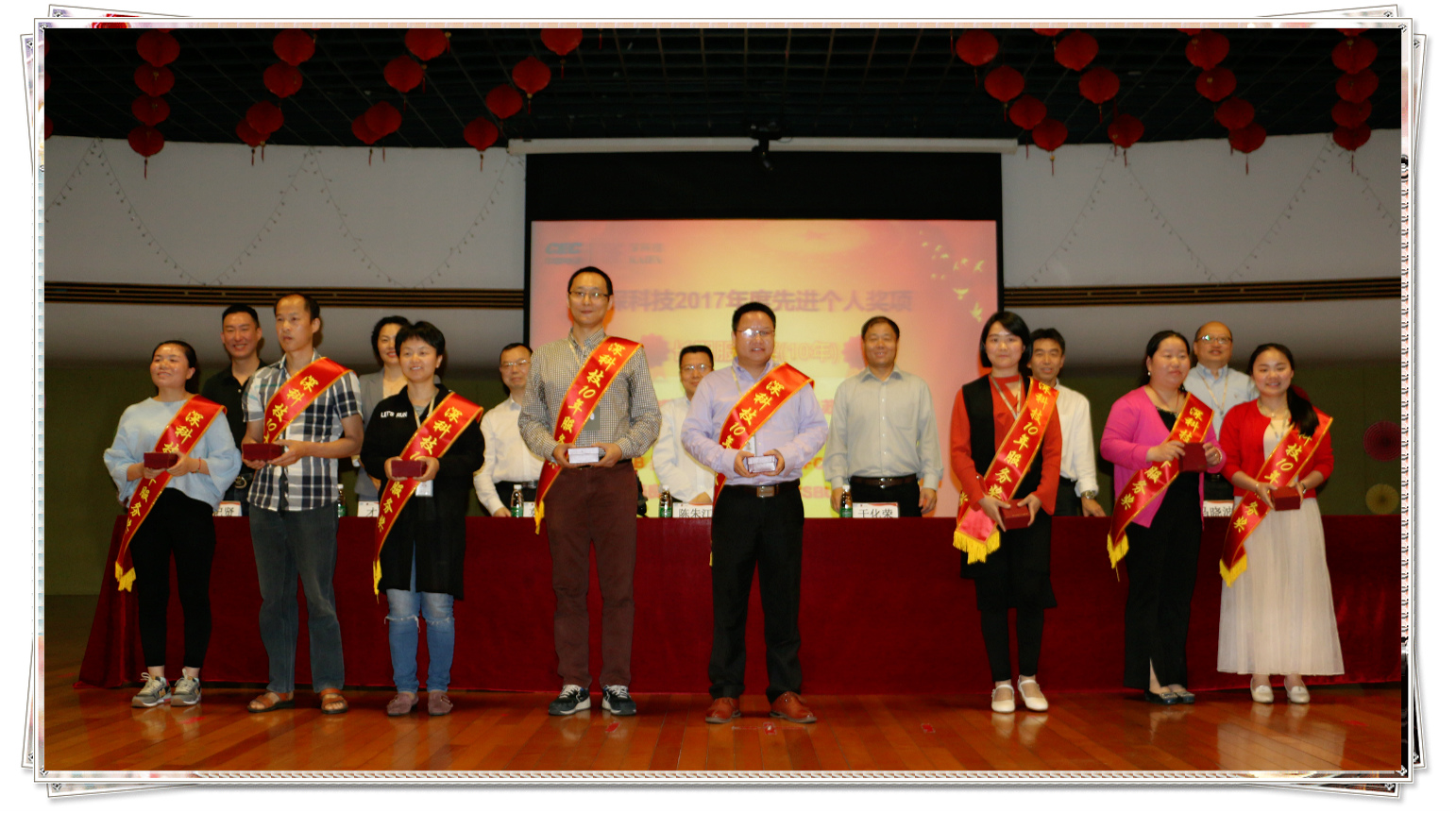 (↓ 10年長期服務獎的獲獎代表上臺領獎)